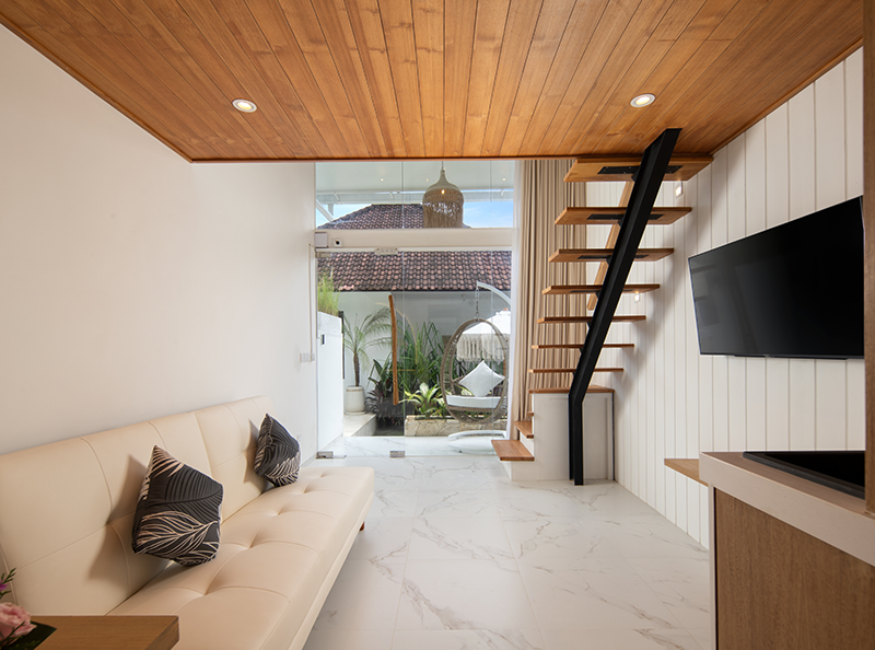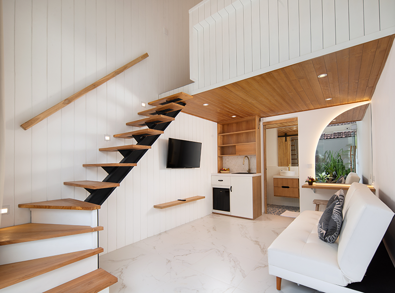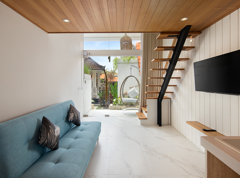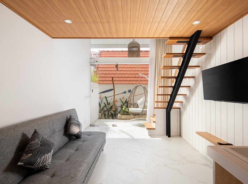 AMOR LOFT LIVING is a must for your next getaway to Canggu, Bali. Located along the vibrant main street of Pantai Batu Bolong, this accommodation offers unmatched convenience, with easy access to the latest restaurants, shops, and surfing spots nearby. With everything at your doorstep, transport is not a necessity.